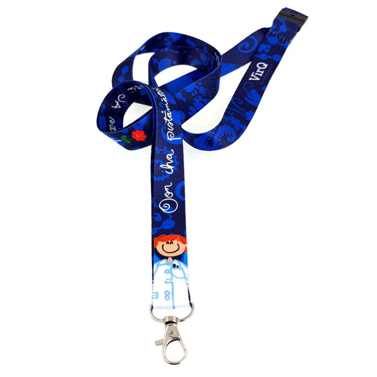 Pehmeä turvalukollinen avainnauha tekstillä "Oon iha pistämätön hoitsu"